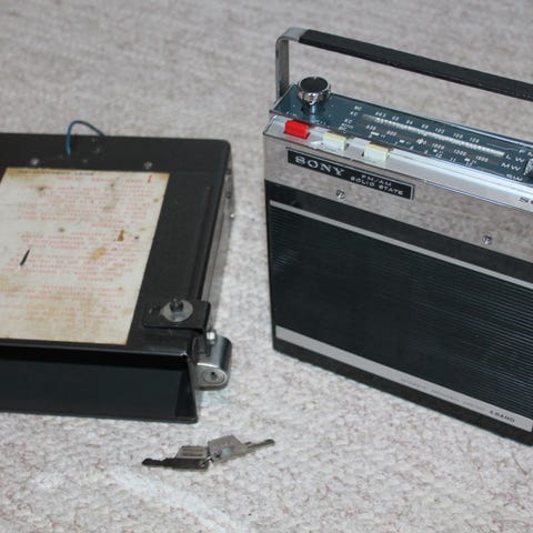 Myydään 60-luvun vanha saksalainen Blaupunkt Frankfurt Tr De Luxe autoradio. Ulkoisesti ihan siistinoloinen ikäisekseen, ei ruostetta, ollut saamieni tietojen mukaan 80-luvulta saakka lämmitetyssä sisävarastossa. Toimivuudesta ei tietoa, myydään siinä kunnossa kuin on ilman valitusoikeutta. Sen verran kokeiltu, että napeista painettaessa punainen merkki liikkuu, ja viritysnupista pyöritettäessä punainen viiva liikkuu oikealle ja vasemmalle radion asteikolla. stereo stereot vahvistin viritin viritinvahvistin autoradio soitin auton mankka autoradio stereot radiosoitin autostereo autosoitin auto automankka saksa 70-luvun 60-luvun vintage retro junior jr autovahvistin autostereo