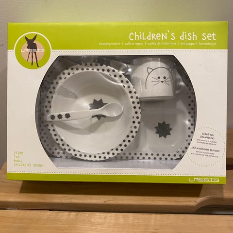 Lasten Ruokailuvälineet, joihin kuuluu haarukka, veitsi ja lusikka. Materiaalina on ruostumaton teräs.