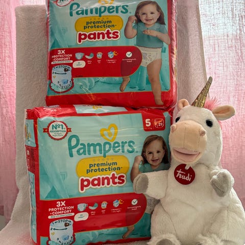 Uudet avaamattomat paketit 2x Pampers Baby-Dry Pants vaippahousut, koko 7 (17+ kg). Kertakäyttöiset housuvaipat. Yhdessä pakkauksessa 31 vaippaa. Valmistuspäivä 31.8.2025 molemmissa (meillä jäivät syksyllä tarpeettomiksi). Lisäksi saa mukaan 15kpl irtonaisia (säilytetty kaapissa pussissa). Hinta yhteensä kaikki 77kpl housuvaippoja.