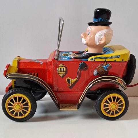 Myydään vanha Kummisetä -henkinen vuosimallin 1950 peltinen Cadillac Series 62 " Dollarihymy ". Pituus noin 28cm ja mittakaava suunnilleen 1/18 . Ikäisekseen tosi siistikuntoinen auto, ei lommoja, koko kori, pohja, tuulilasin karmit ja kapselitkin ovat kaikki peltiä. Puskurit ja maski ovat vahvaa metallivalua. Pyörillä on toimiva kitkamoottori. Auto tulee alkuperäisessä paketissaan. pienoismalli vanha autoja leikkiauto autoja leikkiautoja pikkuautoja pienoismalleja leluauto leikkiautoja pikkuauto leluauto keräilyauto pelti auto metalliauto peltinen retro pelti auto metalli metalliauto vintage metallinen peltiautoja pelti peltinen leikki lelu usa amerikan auto roadmaster road master musta