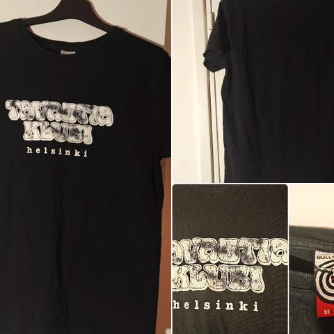 T-paita miehille, koko L. Musta lyhythihainen paita, jossa edessä pieni Tuska-painatus ja takana suuri festaripainatus bändilistoineen. Sopii vapaa-aikaan ja esimerkiksi keikoille tai festareille.