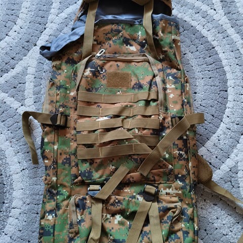 Hyvässä kunnossa oleva 65 litrainen rinkka. Mukana tulee Miltecin sadesuoja.