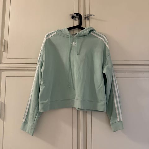 Myydään kuvan vaaleanpun. Adidas huppari, koko s hinta 6€