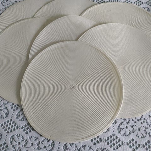 Neljä siistiä harmaan sävyistä pöytätablettia. Halkaisija 38cm.