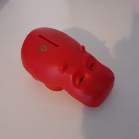 Harvinainen Kassakaappi Oy:n pinkki metallinen säästölipas