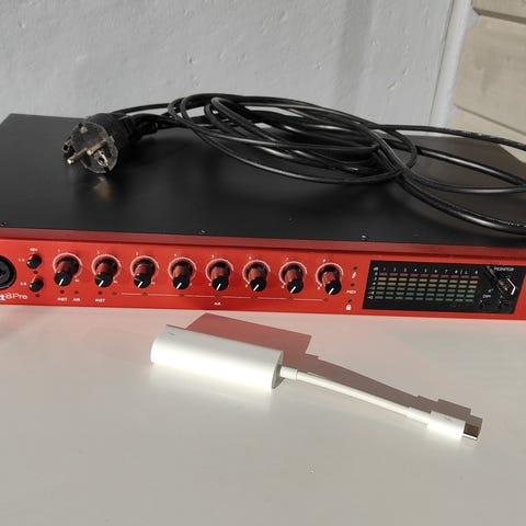 Focusrite Scarlett 2i2 on USB-äänikortti, jossa on kaksi yhdistelmäliitäntää mikrofonille tai instrumentille etupaneelissa. Laitteessa on erilliset gain-säätimet kanaville, kuulokelähtö äänenvoimakkuussäätimellä sekä linjalähdöt takapaneelissa. Runko on punainen metallikuori, joka suojaa laitetta ja tekee siitä sopivan pöytäkone- tai kannettavan tietokoneen kanssa käytettäväksi kotistudiossa tai muussa äänityskäytössä.