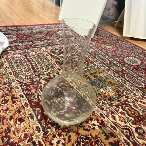 Läpinäkyvä lasinen karahvi, joka sopii esimerkiksi viinin tai veden tarjoiluun. Muotoiltu leveällä pohjalla ja kapeammalla kaulalla, mikä helpottaa kaatamista ja käsittelyä. Soveltuu käyttöön kattauksissa ja arjessa. Myydän tarpeettomana.