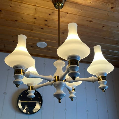 Vintage, teak, tiikki, tanskalainen design, kattokruunu, lamppu, plafondi