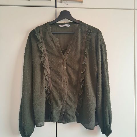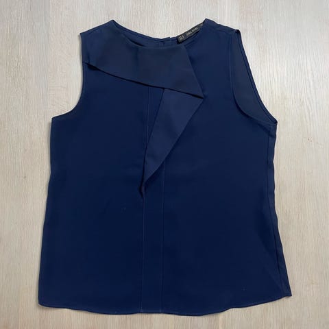 Zara pusero naisille, koko M. Väri tummansininen. Materiaali polyesteriä, kevyt ja hieman läpikuultava. kuminauharypytyksellä ja hieman pidempi, väljä helma. Sopii arki- ja toimistokäyttöön esimerkiksi housujen tai hameen kanssa.