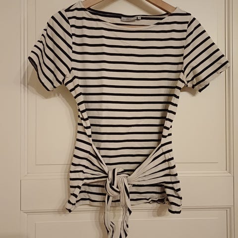 Raidallinen Me&i pusero / t-paita koko S. Kauniit hihat