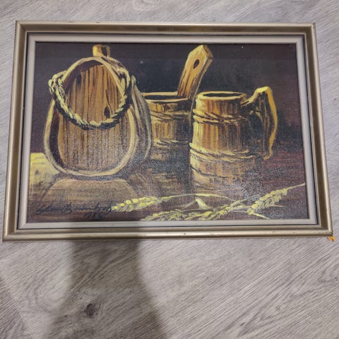 Kanavatyö taulu ja hienot vanhat kehykset.