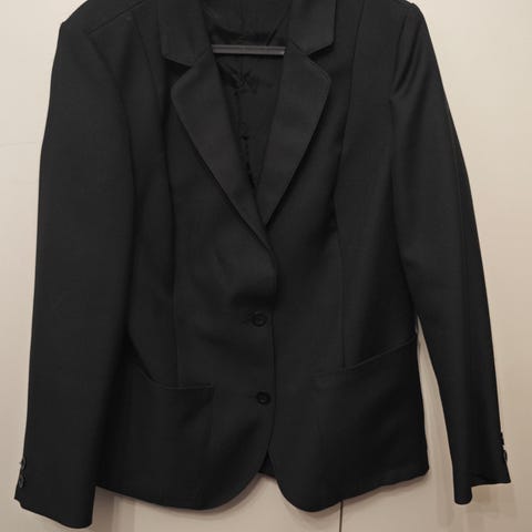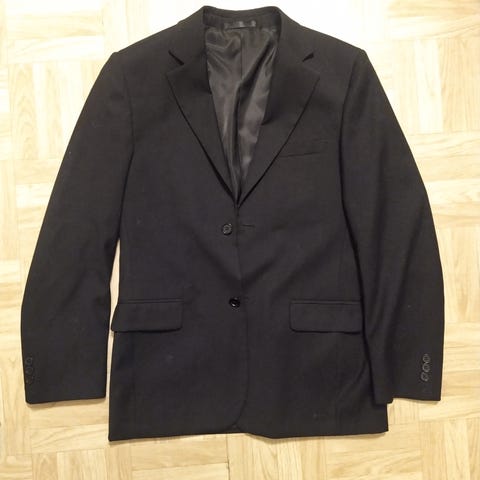 miesten bleiseri. Väri musta. Koko S. Materiaalina puuvillasekoite (päämateriaali puuvilla, mukana elastaania joustavuuden lisäämiseksi). Malli on slim fit -tyylinen, yksirivinen ja siinä on kauluskäänteet sekä etutaskut. Sopii esimerkiksi arki- ja juhlapukeutumiseen.