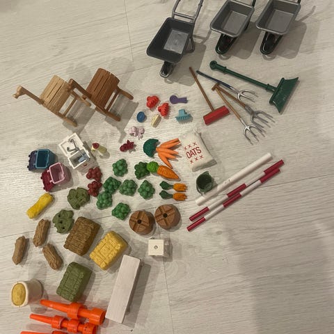 - takarivissä 2 satulaa ja suitsea ponille. Toisesta satulasta katkennut kiristysnarun pää, pysyy kiinni pompulasta tehdyn lenkin avulla. Nämä yhteensä 10 e