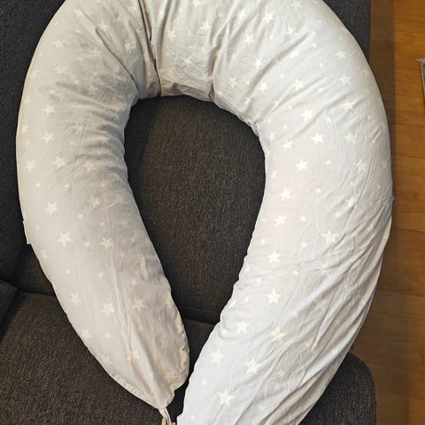 Siisti, ryhdikäs ja muhkea imetystyyny, olen täyttänyt sitä ikean tyynystä otetulla vanulla. Saa solmittua selän taakse, niin pysyy tukevasti paikoillaan. Päällikangas on itse värjätty vaaleanpunaisesta mustaksi, siitä kuntoluokka kohtalainen. Savuton, lemmikitön koti, käytämme hajusteetonta pesuainetta.