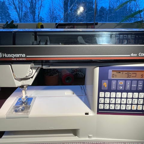 Käy hiljaisesti ja pehmeästi, oikein hyvä siis ommella. Täynnä Husqvarnan oivalluksia ja ominaisuuksia.