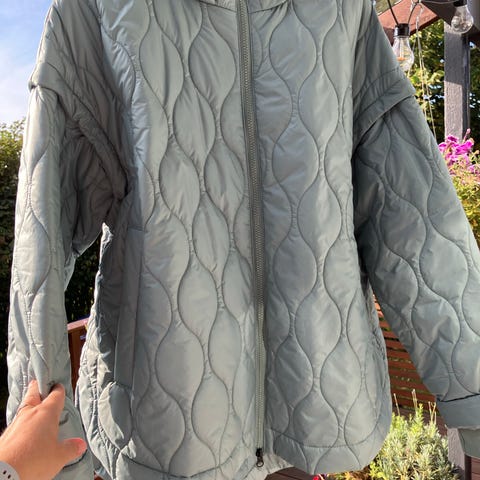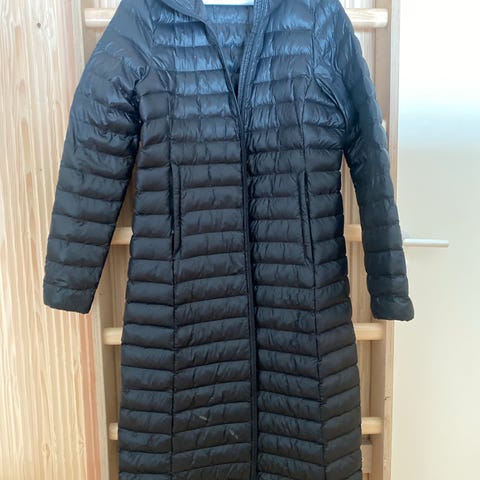 Tosi kiva pitkä malli. 160cm pitkällä ulottuu polviin. Vetoketju aukeaa molempiin suuntiin.