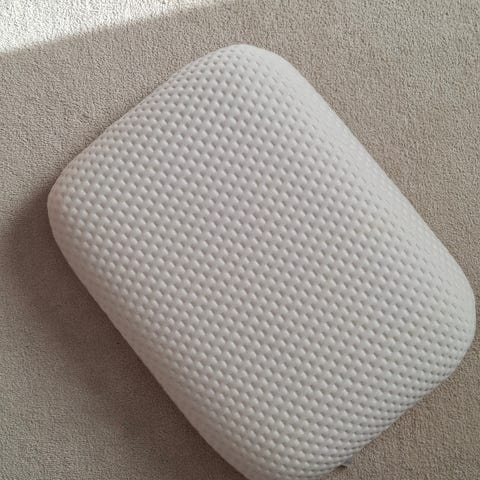 Käytännössä käyttämätön tyyny. Lyhyet päiväunet kerkesin ottamaan ja herätessäni totesin, että ei ole omalle niskalle tehty. Kotitaloudessa ei lemmikkejä, luteita tai täitä.