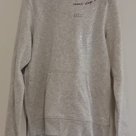 Uudenveroinen (vähän käytetty) harmaa H&M:n collegehuppari. California crew -teksti ja kukkakuvio. Hupun metallirenkaat ovat koriste eli huppuun ei kuulu nauhoja. Koko 170.