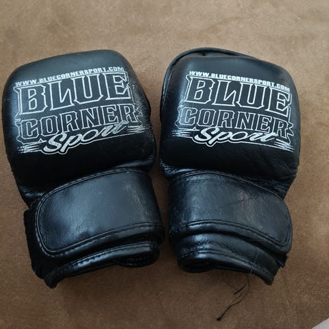 Annetaan blue corner sportin grappling hanskat. Ikää noilla on jo jonkin verran, mutta käyttö ollut sen verran vähäistä, että ovat hyvässä kunnossa.