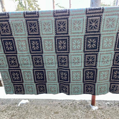 Kaunis vanha selkeästi todella vähän käytetty villa viltti tai huopa.