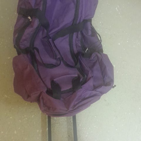 MotoX tarvikelaukku, jossa pyörät toisessa päässä ja vetokahva toisessa + saa integroituna sisälle piiloon.