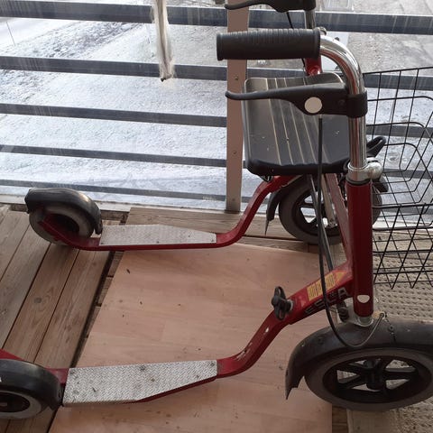 Ostan hyväkuntoisen kicksparkin koiravarusteilla.