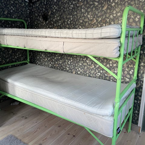 Siitä myyntiin siistikuntoinen kunnon puu kerrossänky. Ammattilaisen maalaama. Alasängystä puuttuu kaksi lautaa, mutta ei ole haitannut koskaan käyttöä.