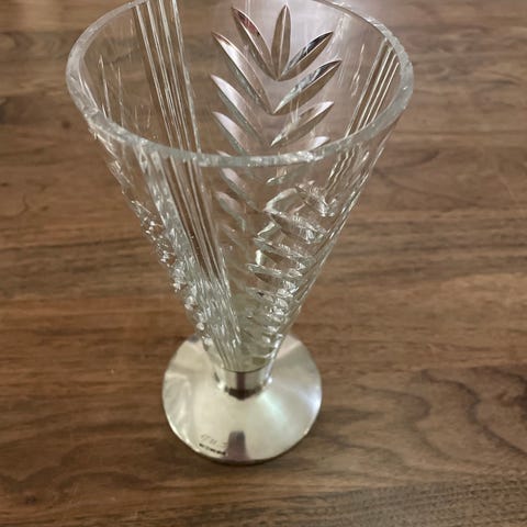 Hopea-alustalla käsin hiottu kristallikulho. Suunnittelija Saara Hopea. Nuutajärvi.