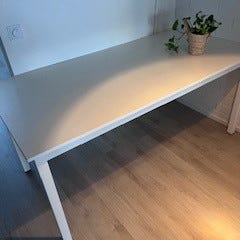 Itse maalattu turkoosi täyspuinen ruokapöytä. Pinnassa pari kolhua, luonnonvalossa ja kesällä otetuista kuvista saa parhaimman käsityksen, nämä nyt otetut eivät tee oikeutta pöydälle.