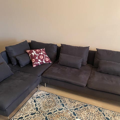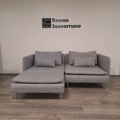Myynnissä erittäin suuren suosion saavuttanut Ikean Söderhamn sarjan kulmasohva. Ryhmä sisältää 3:n istuttavan osan, kulmapalan ja 1:n istuttavan osan. Kaikkien osien rungot ovat ehjät. Päällisten väri: Isunda harmaa. Kyseinen väri poistunut Ikean valikoimista. Kyseisen värisellä päällisillä näin siistikuntoista todella harvoin tarjolla. Ryhmän kaikki päälliset ovat irroitettavissa pesuun. Runkojen päälliset mukaan lukien. Lisäksi päälliset ovat halutessaan vaihdettavissa. Ryhmän kunnossa ei negatiivista huomautettavaa. Sohvan hinta: 779€.