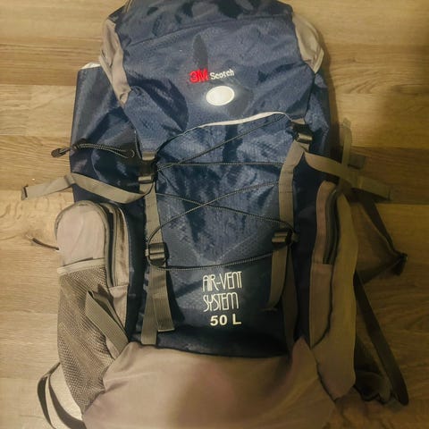 Retro 3M reppu, pientä kulumaa. K 430mm, reppu on pyöreä, halkaisija 260mm. Edessä pieni tasku.