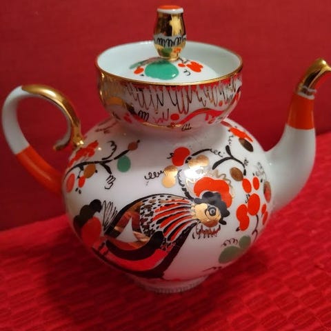 Koboltinsinisiä astioita. Ehjä ja erittäin hyvässä kunnossa oleva Lomonosov teevesikannu. Arabian teekannu josta kansi puuttuu ja suussa kolhuja, Leimaton saman värinen kukkamaljakko, joka erittäin hyvässä kunnossa. Leimaton samanvärinen tuhkakuppi joka myöskin erittäin hyvässä kunnossa. Kaikki yhteishintaam 50€