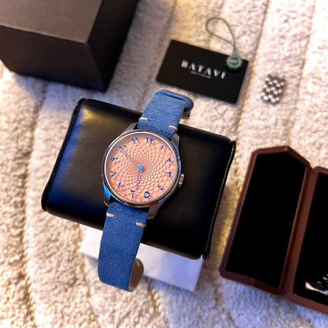 Mukana kaikki mitä kuvissa, ts. itse kello alkuperäisellä rannekkeella, pehmeä kotelo ja avaimenperä. DLC pinnoituksessa pari pienen pientä jälkeä (kuvissa).