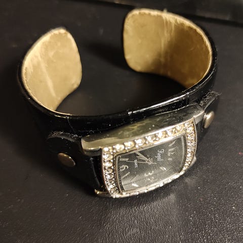 Yves Rocherin naisten kvartsirannekello. Kello näkyy kuvassa; paristo puuttuu.