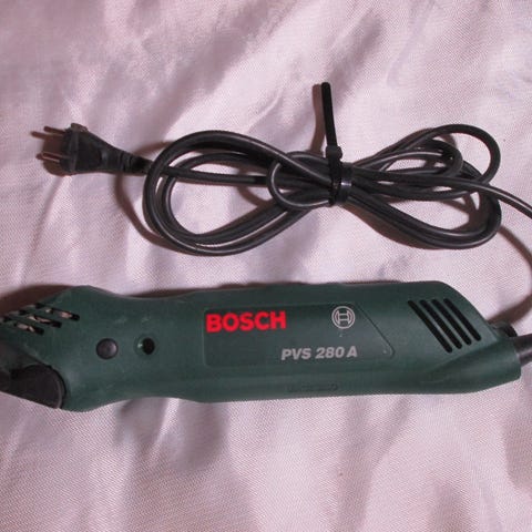 Isävainajani vain muutaman kerran käytössä ollut ammattikäyttöön tarkoitettu tummansininen Bosch 125 mm pikkurälläkkä. Kokoonsa nähden tehokas laite. Tässä ihan eri tuntuma kuin halpisrälläköissä. Muuten hyvinkin siisti, mutta kulmavaihteen metalliosassa vähän naarmuja. Ohuen rungon vuoksi soveltuu myös ahtaisiin väliin käytettäväksi. Nykyasetuksien mukainen turvasähköjarru eli sammuttaessa pysähtyy nopeasti. Kuminen 2,5 m pitkä liitäntäjohto. Mukaan uusi Hiltin katkaisulaikka, vähän käytetty Rhodius -timanttilaikka ja Mirka -lamellihiontalaikka.