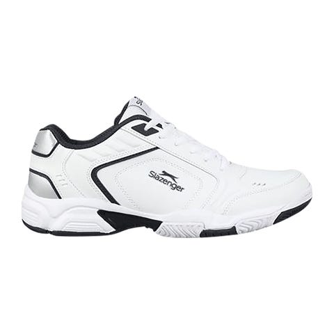 Mukavat tenniskengät, joissa on tukeva valettu pohja ja pehmeä sisäpohjallinen. Hyvä nilkan tuki ja ylhäällä reiät, jotka takaavat kätevän ilmanvaihdon. Nauhakiinnitys.Slazenger Tennis Shoe -kengät sopivat kaikentasoisille tenniksen pelaajille.Vakaa pohja yhdistettynä hyvään nilkkatukeen varmistaa hyvän pidon ja mukavuuden.Päällinen rei'itysrei'illä pitää jalat raikkaina koko pelin ajan.