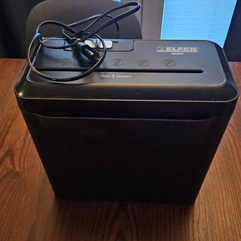 Elfen ristiinsilppuava paperisilppuri kotikäyttöön. Musta, maltillisen kokoinen, silppuaa korkeintaan viisi sivua kerralla. Silppuaa paperit 4 x 40 mm paloiksi ja 8,5 litran säiliö.