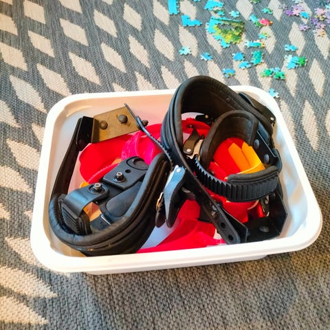 Näppärä kiinnitysmekanismi, kiristys napsu kerrallaan, selvästi parempi kiinnitystapa kuin perinteiset remmit.