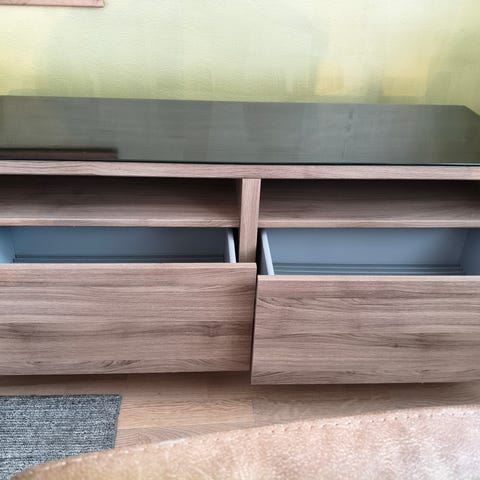 Myydään IKEA Besta TV taso. Ovet ja lasitaso melko hyvässä kunnossa, pieniä jälkiä näkyy mutta ei normaalikäytössä havaittavia.