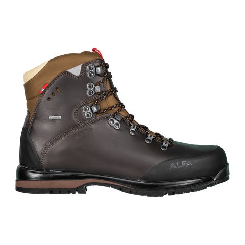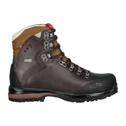 Klassiset, mukavat ja vedenpitävät vaelluskengät, joissa on mukava vaimennus. Nahkapäällinen, jossa hengittävä Gore-Tex-kalvo. Vibram-ulkopohja takaa hyvän pidon.ALFA Walk King Advance GTX ovat klassiset vaelluskengät, joilla on monipuoliset käyttömahdollisuudet. Niitä voi käyttää päiväretkillä metsissä ja maastossa, vuoristovaelluksilla, metsästysretkillä ja mökistä mökkiin -patikkaretkillä talvella. Mahdollisuuksia on monia.Laadukas nahka ja Gore-Tex -kalvo tekevät näistä kengistä kestävät, vedenpitävät ja hengittävät. Kengissä on kaikille sopiva istuvuus, kiristysnyöri ja tuplahakaset helpottavat yksilöllisen istuvuuden säätöä. Nilkkaosan pehmeä yläreuna ja muistivaahto takaavat erinomaisen mukavuuden, kun taas kumivahvike suojaa jalkaa ja parantaa kulutuskestävyyttä ja pidentää kengän käyttöikää.Pohjassa käytetty teknologia tarjoaa erinomaisen patikointikokemuksen. Kevyt EVA-välipohja vaimentaa iskuja, kun taas Vibram® Grip AMG -ulkopohja tarjoaa tutun ALFA-pidon joka alustalla, märällä tai kuivalla.Nämä kengät antavat sinulle paljon hyviä vaellusmuistoja, sekä reppu selässä että ilman.Tuotetiedot:- Paino / kenkä: 810 g (EU 42)- Varren korkeus: 16,5 cm (EU 42)- Istuvuus: Leveä- Materiaali: Pintanahka ja Gore-Tex- Ulkopohja: Vibram® AMGYksityiskohdat:- Vedenpitävä ja hengittävä Gore-Tex -kalvo takaa kuivan ja mukavan kengän säästä riippumatta.- Laadukas pintanahka takaa korkean kulutuskestävyyden- Vibram-ulkopohja, jossa ainutlaatuinen kuvio ja erityinen kumiseos- Varvas- ja kantapääsuoja, vahvistetut kanta ja kärki- Vahvistetut saumat Kevlar-materiaalia.- Vakaa välipohja vaimentaa hyvin- Vettä hylkivät kengännauhat