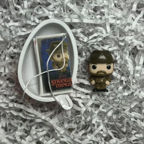 Netflix Stranger Things keräilyfiguuri. Pieni muovinen hahmo. Steven ja Robin kaapelikoristefiguurit.