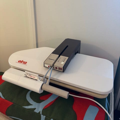Prässi ja silityslauta samassa paketissa. Tällä onnistut helposti erikokoisten prässättävien materiaalien kanssa. Paljon kätevämpi ja turvallisempi kuin tavallinen silitysrauta. Kulkee linjalla Helsinki-lohja-Turku-Rauma-Pori-Forssa-Lahti-Helsinki sopimuksen mukaan.