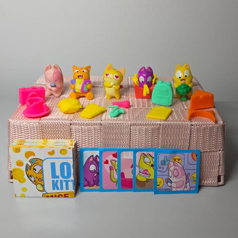 Leikkimättömät ja hyväkuntoiset. Mcdonalds-kissan mukana alkuperäinen laatikko sekä käyttämätön tarra-arkki. Mukaan myös käyttämätön virtuaalilahjakortti, mutta sen voimassaoloajasta en voi luvata mitään. Paketin hinta määräytyy vain fyysisten lelujen mukaan.