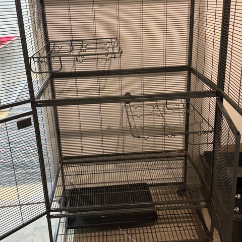 Häkki 78x48x80cm. Erinomaisessa kunnossa/uuden veroinen. Häkin koko katto aukeaa, katto on 1 iso luukku. Edessä 2luukkua, jotka oli minusta pienet, joten tein sivuseiniin isommat luukut, jos et tykkää tekemistäni luukuista, mukana tulee uudet seinät jotka voit vaihtaa tilalle niin häkki palaa alkuperäiseen kuntoon. Tasot siirreltävät, ja häkin saa osiin. Häkin mukana tulee kuvien tarvikkeet. Puujutut oli hetken käytössä rotilla ja sitten pesty huolella ja käytetty uunissa. H.yht.80e. Mukaan myös juomapullo tai pari, jotka voit valita toisessa ilmoituksessa olevista juomapulloista.