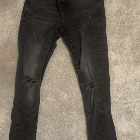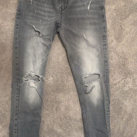 New Yorker farkut miehille, koko S ja vyötärökoko W26. Materiaalina denim, värinä sininen kulutusefekteillä. Viis-taskumalli, vyölenkit ja nappi–vetoketjukiinnitys. Sopivat arkipukeutumiseen ja vapaa-aikaan.