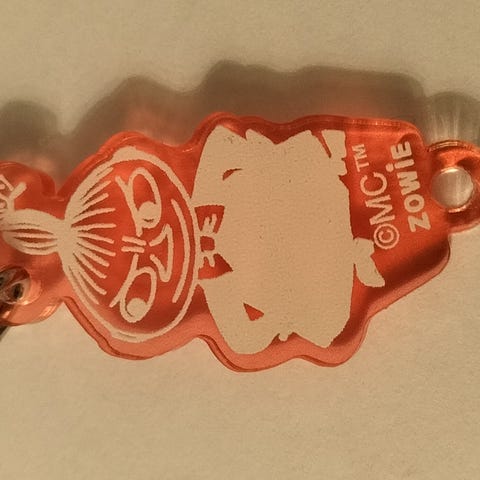 Muumi-aiheinen lasikoriste, jossa on kaiverrettu Pikku Myy -hahmo. Neliönmuotoinen lasilevy sopii esimerkiksi ikkunakoristeeksi tai sisustuselementiksi. Väri on läpikuultava lasi, jossa vaalea kaiverrus Pikku Myystä. Pölyyntynyt varastossa, mutta pesen kyllä ennen toimistusta :)!