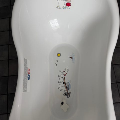 Valkoinen vähän käytetty kylpyamme. Vetoisuus noin 40l. Mitat: 84cm pitkä. Leveys enimmillään 47 ja kapeimmillaan 38cm. Pohjassa kätevä poistotulppa.
