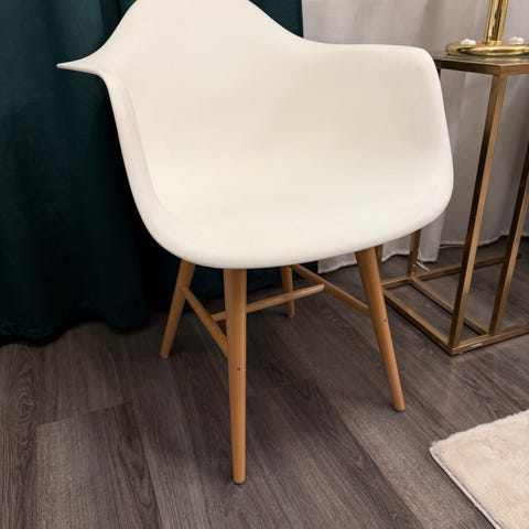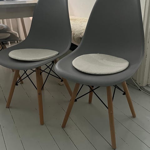 4 kappaletta hyvässä kunnossa olevia Maskun kuppituoleja. Tuolien runko on muovia, jalat puuta ja istuinosa nahkainen.
