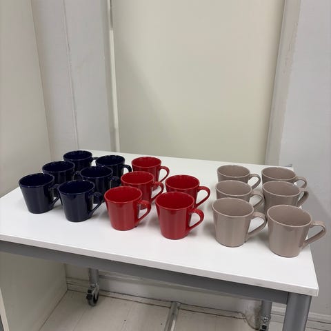 Sagaform sinisiä mukeja 4 kpl. Sisäpuolella kulumaa kahdessa mukissa (kts 2 viimeistä kuvaa), muuten siistikuntoiset. Kaikki yht. 5€ + pk.