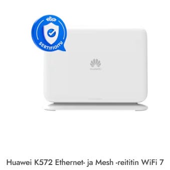 Tarjolla uudet Huawei reitittimet WiFi 7 K572 Ethernet- ja Mesh. 2 kpl uusia avaamattomia laatikoita.